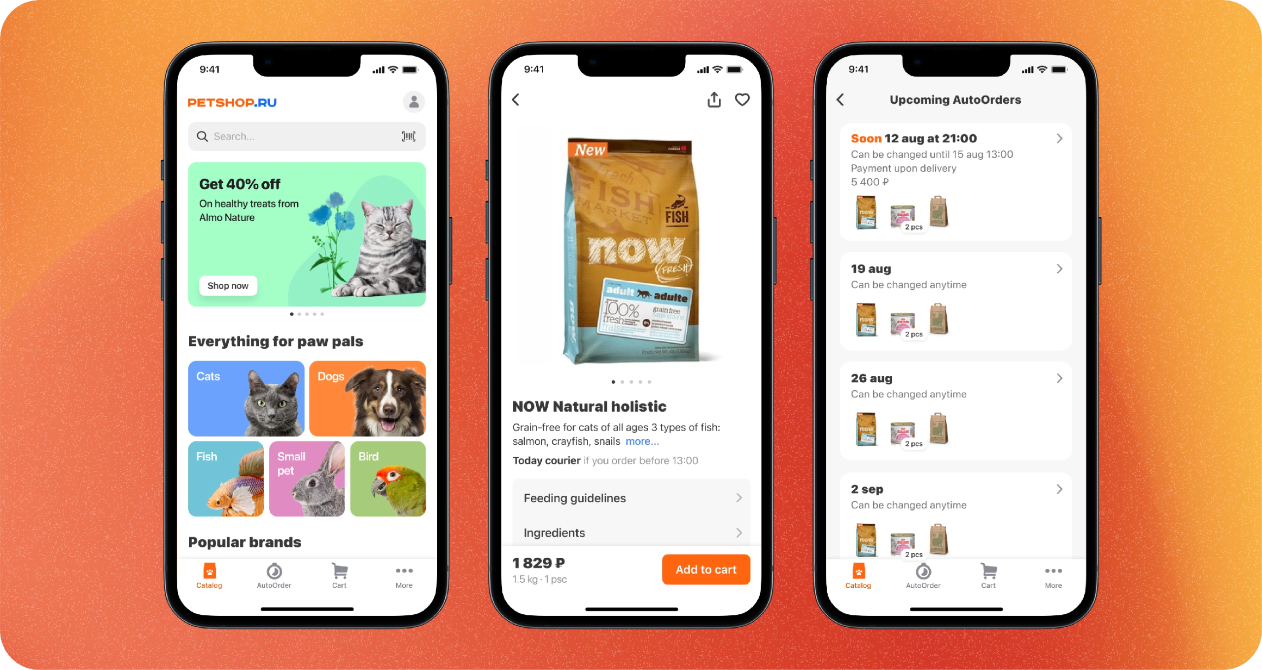 Completely designed the concept for first petshopru app, including all sections of the catalog, cart, order, and settings screens.
